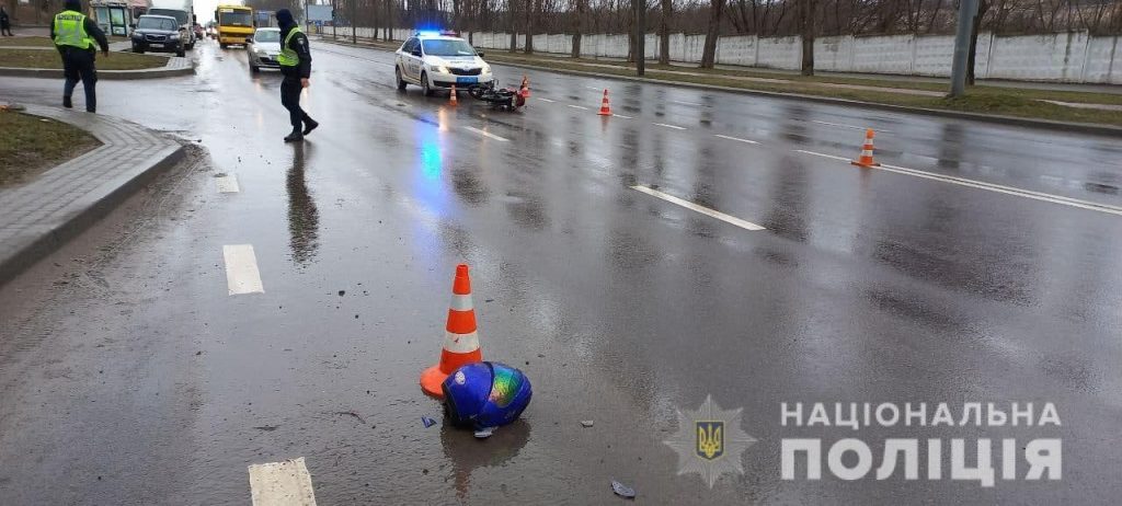 Повідомлення про травмованого у ДТП мотоцикліста на вулиці Романа Шухевича надійшло до поліції від медиків сьогодні о 09:05.