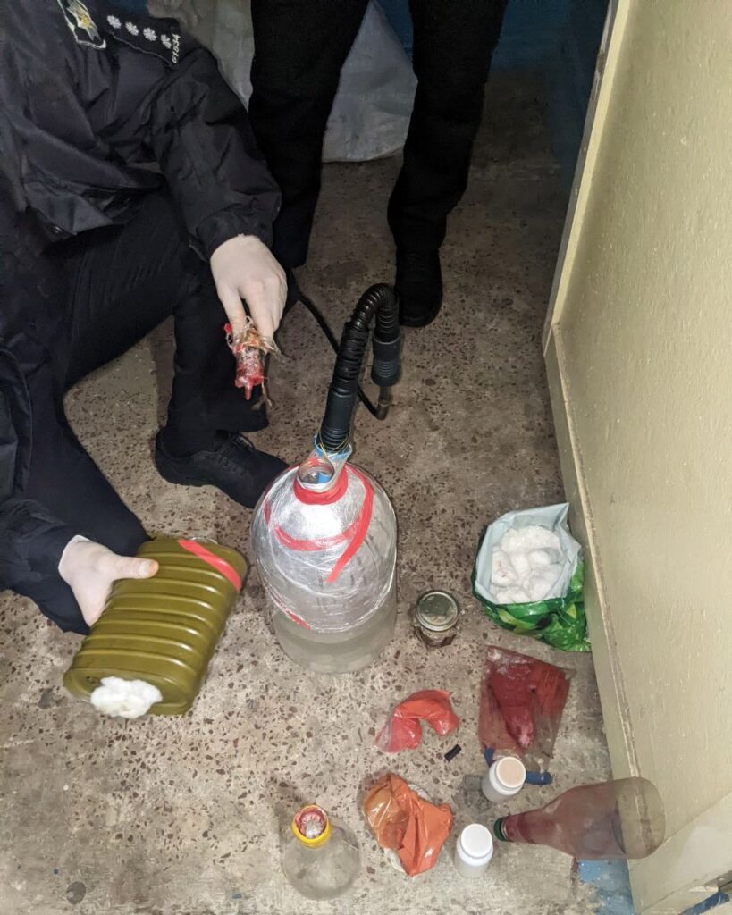 Учора, шостого лютого, під час санкціонованого обшуку у квартирі за місцем його проживання правоохоронці виявили та вилучили лабораторне обладнання для виготовлення метамфетаміну, ємності із соляною кислотою, речовину із вмістом псевдоефедрину, червоний фосфор, сухий гранульований йод, скляні ємності та трубки, за допомогою яких виготовляють готову наркотичну речовину, близько двох грамів готового психотропу, марихуану та пристрої для вживання наркотиків.