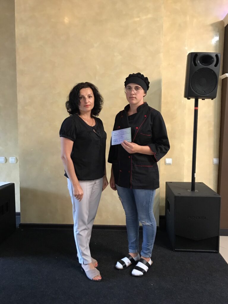 Леся Фецич із Тернопільської області захоплюється кулінарією, працювала в кафе, дитсадку, а згодом стала на облік у Чортківській районній філії Тернопільського обласного центру зайнятості. Саме там вона дізналася про можливість швидкого отримання робітничої кваліфікації кухаря у Рівному. Довго не вагаючись, пішла до навчального закладу, де продемонструвала знання теорії та підготувала кваліфікаційні роботи за своєю технологічною картою. Кухар запропонував: суп картопляний з грибами, омлет з овочами, шніцель рибний зі смаженою картоплею, котлету м’ясну з відвареними макаронами. Кваліфікаційна комісія відзначила смакові якості страв, хорошу подачу та присвоїла робітнику кваліфікацію «Кухар» 3 розряду. Пані Леся отримала державний сертифікат і тепер офіційно працюватиме у місцевому дитсадку, готуватиме якісні та здорові страви.