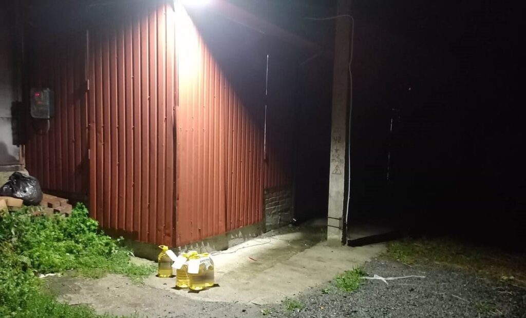 Під час огляду входу в торговий заклад поліцейські нічого підозрілого не виявили. Втім, коли зайшли із тильної сторони, де знаходиться складське приміщення, то побачили чоловіка, який вже встиг винести п’ять п’ятилітрових ємностей олії.