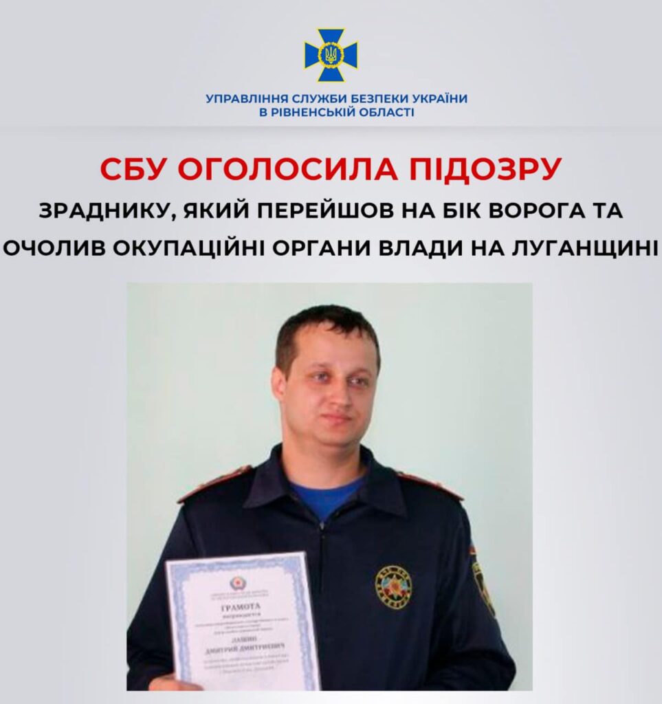 Управління СБУ в Рівненській області повідомило про підозру зраднику, який перейшов на бік ворога та очолив окупаційну владу в Луганській області.