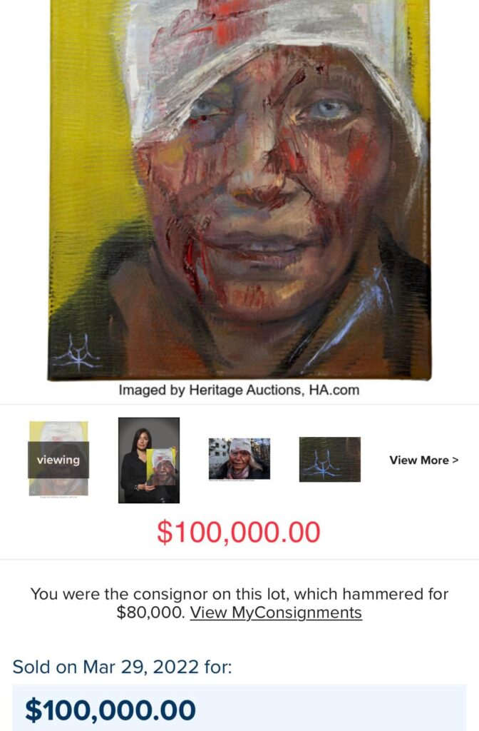 На торгах Heritage Auctions було продано за $100 тис. портрет учительки Олени Курило, пораненої внаслідок російського обстрілу Чугуєва.