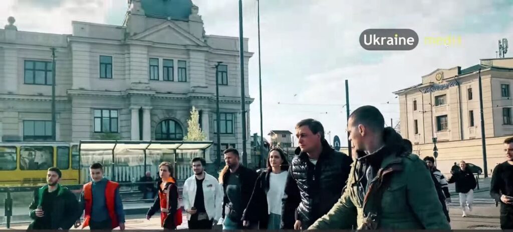На відео можна побачити, як володарка «Оскара» у натоплі у Львові швидко прямує до бомбосховища.