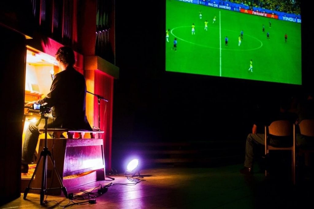 Картинка матчу виведена на екран, але замість звичного звукового супроводу – шуму трибун, коментатора – органна музика. Органіст Штефан фон Ботмер імпровізує і підлаштовується під те, що відбувається. Наприклад, ось так це було на матчі Швеція – Україна.