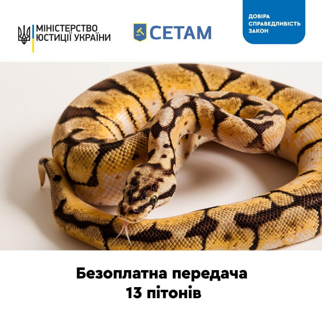 OpenMarket – СЕТАМ віддає 13 змій виду «Пітон», яких було конфіскованих за рішенням суду, БЕЗОПЛАТНО!