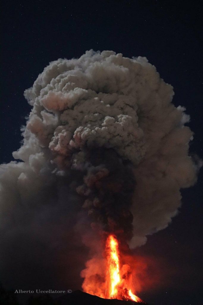 Вулкан Етна, який на Сицилії, почав виверження. Стовп вулканічного попелу піднявся на висоту 10 тисяч метрів.