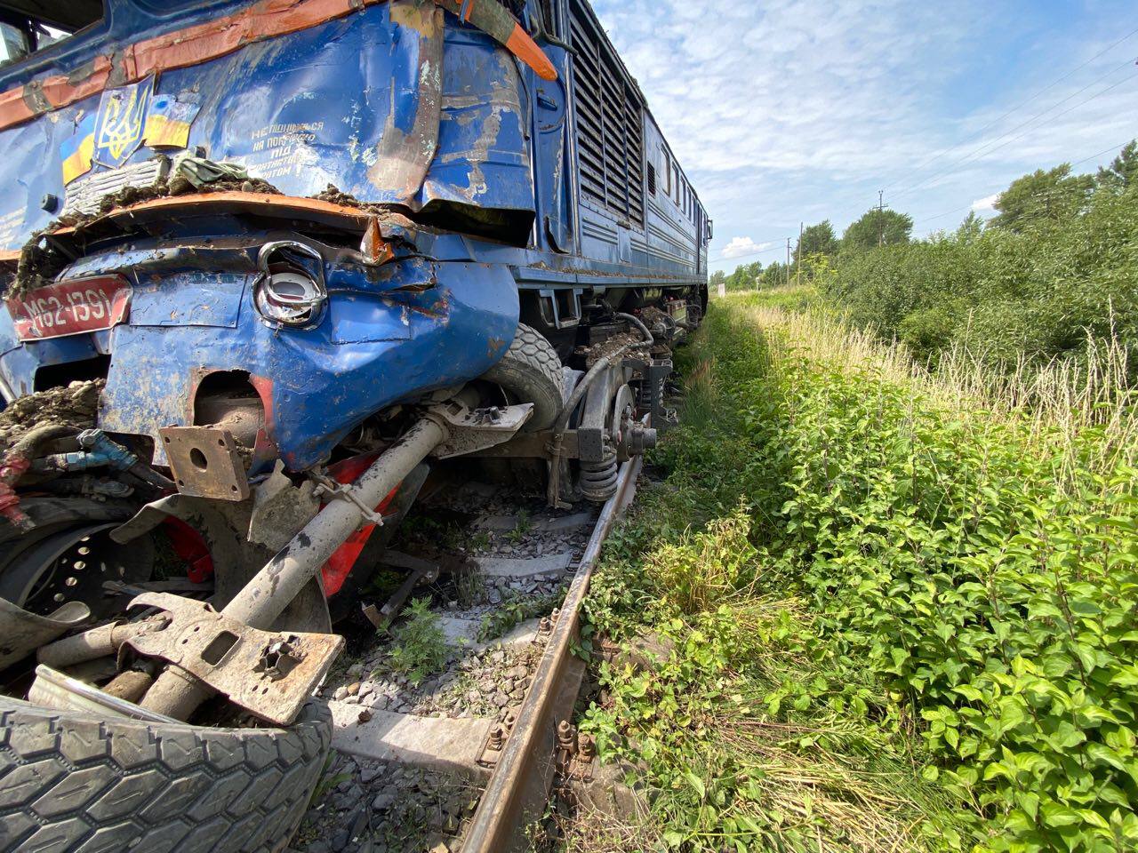 При справно працюючій переїзній сигналізації водій вантажівки виїхав на колії, чим спричинив зіткнення.