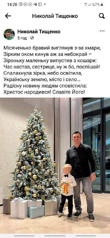 Микола Тищенко на Різдво привітав українців у Фейсбуці з Великоднем, але пізніше видалив допис