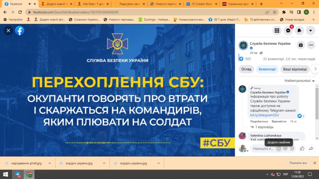 У черговій розмові, перехопленій СБУ, окупант розповідає, як сили рашистів потерпають від наших захисників: «Вчера колонна шла обратно, 10 км отсюда… «Тигра» так расху*рили, что типы с «Тигра» на 4 метра повыскакивали с этой машины, нах*й. Переломы открытые, пи*дец, там смотреть невозможно было…»