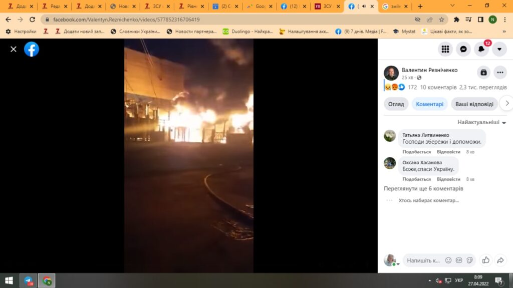 Били з артилерії. Влучили по підприємству енергетичної інфраструктури. Трапилась сильна пожежа у результаті витіку мастила.