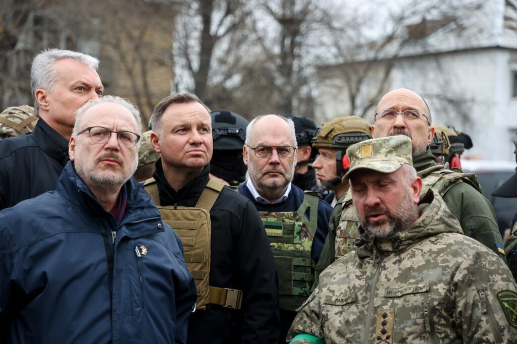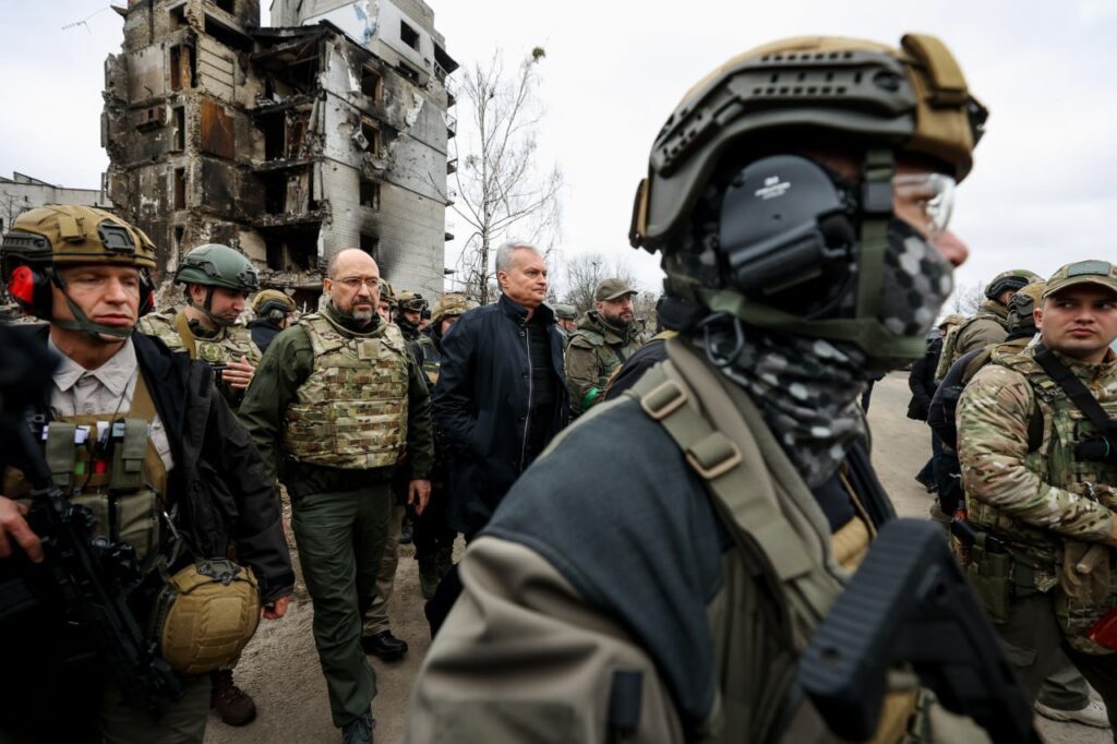 Прем’єр-міністр України Денис Шмигаль сьогодні разом із президентами Естонії Аларом Карісом, Латвії Егілсом Левітсом, Литви Гітанасом Науседою та Польщі Анджеєм Дудою відвідали розбомблену росією Бородянку.