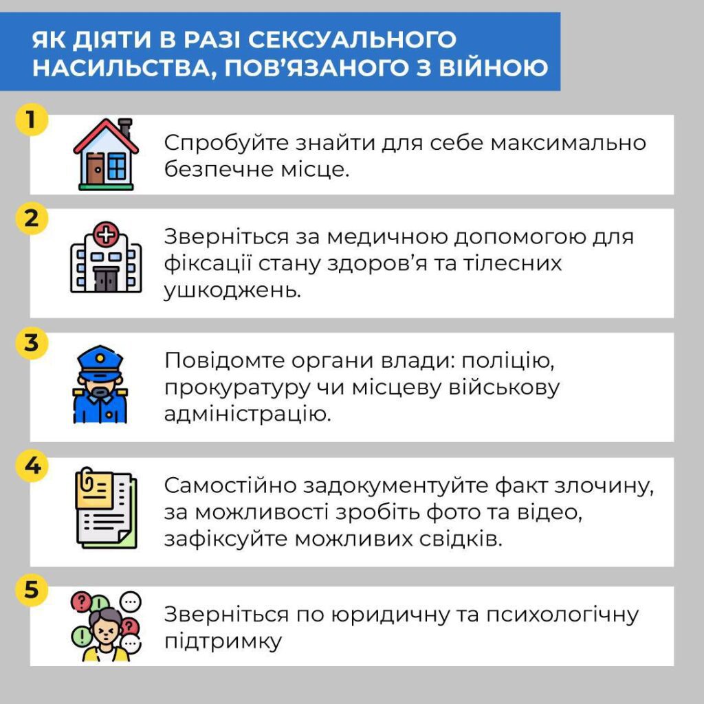 Урядовою уповноваженою з питань гендерної політики спільно з Міністерством внутрішніх справ та La Strada Ukraine розроблено рекомендації для жертв сексуального насильства.