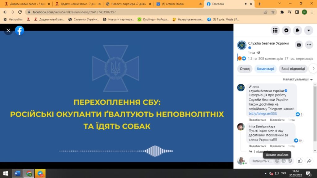 Ось як цей загарбник, що веселить свою дружину, розповідаючи, що «…тут три танкиста взяли и изнасиловали 16-летнюю девчонку…». І, як зрозуміло з розмови, його дружину це неабияк розвеселило.