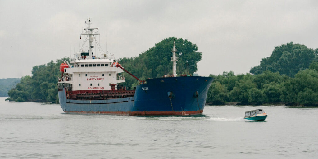 Фото: вантажне судно в Сулінському каналі у Тулчі, Румунія (Andrei Pungovschi/Bloomberg).