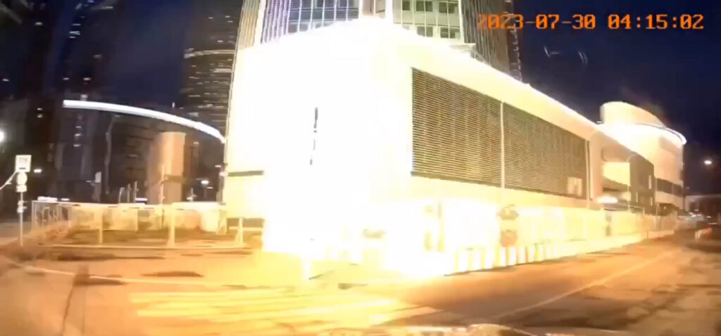 Унаслідок цього пошкоджено 50-поверхову будівлю “IQ-квартал”, вибито скло в кількох інших будівлях. Щоб побічати відео доскрольте до кінця сторінки.