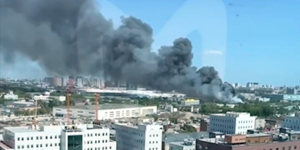 За даними прокремлівських ЗМІ, нібито горить одноповерховий ангар на площі близько 70 квадратів у промисловій зоні на південному сході москви.