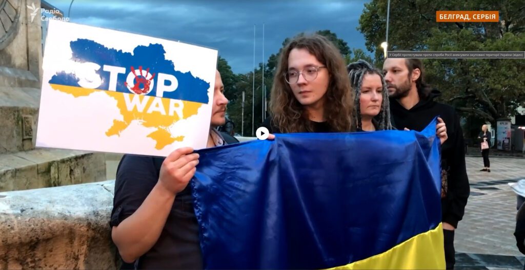 1 жовтня в центрі столиці традиційно проросійської Сербії Белграді відбулася акція протесту проти спроби росії анексувати окуповані нею території України.