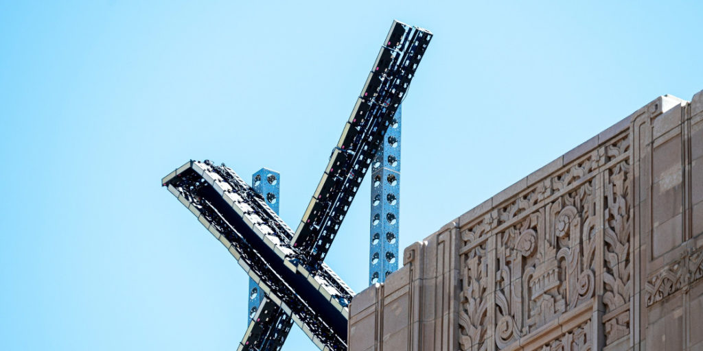 Фото: Логотип X на штаб-квартирі компанії в Сан-Франциско, Каліфорнія, США. (Девід Пол Морріс/Bloomberg).