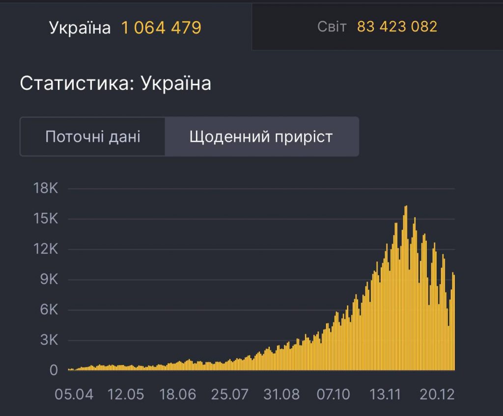Загалом в Україні вже діагностували 1 064 479 випадків. Із них померло 18 680 (+147) пацієнтів, одужало — 720 009 (+10 016).