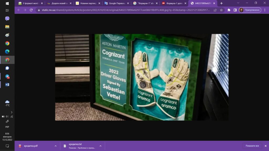 Команда “Астон Мартін” (Британія) організувала благодійний аукціон. Серед представлених на ньому предметів – гоночний костюм та рукавички чотириразового чемпіона “Формули-1” Себастьяна Феттеля, схема відомого боліда Aston Martin та його частини.