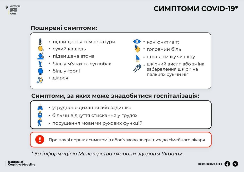 Разом із Міністерством охорони здоров’я України ми підготували інфографіку щодо актуальних симптомів коронавірусної хвороби.