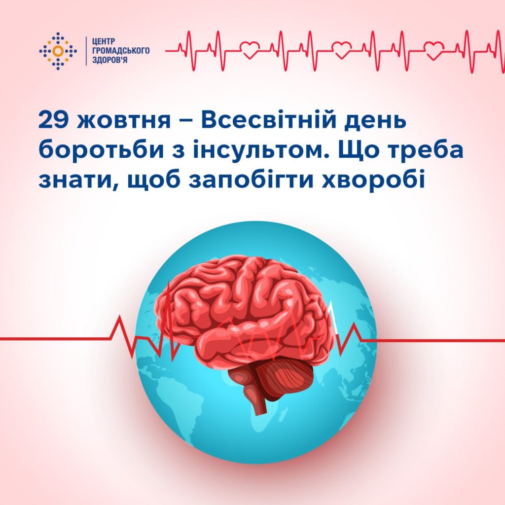 До Всесвітнього дня боротьби з інсультом 29 жовтня Центр громадського здоров’я нагадує, які основні ознаки інсульту, що необхідно робити при підозрі на інсульт, та як йому запобігти. Долучайтеся до поширення інформації про інсульт — це допоможе зберегти життя!