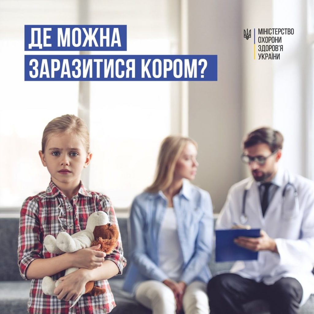 Саме через високу заразність кором можна інфікуватися будь-де: у школі, у дитсадочку, на роботі, в метро, в маршрутці, у таксі (якщо перед вами в ньому їхав хворий), у магазині, спортзалі, в басейні, на дитячому майданчику, повідомляєють у МОЗ України.