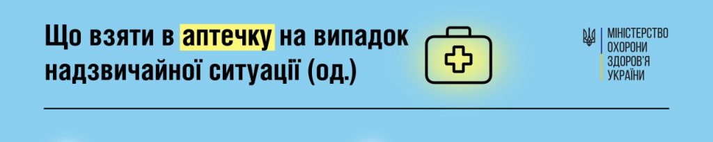 Аптечка допоможе підготуватися до будь-якої надзвичайної ситуації природного, техногенного чи воєнного характеру, повідомляє МОЗ.