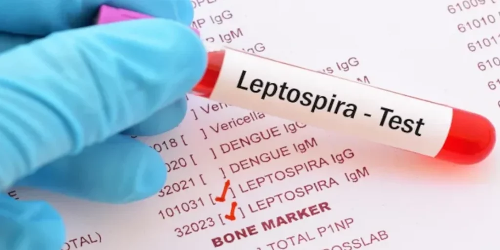 Людина може захворіти у період від двох днів до чотирьох тижнів після зараження. Симптоми варіюють від легких: головний біль, нудота, біль у литках, почервоніння очей, діарея, висипання, температура може підніматися до 39-40 градусів, до серйозних: ураження нирок, печінки, менінгіту і навіть смерті.
