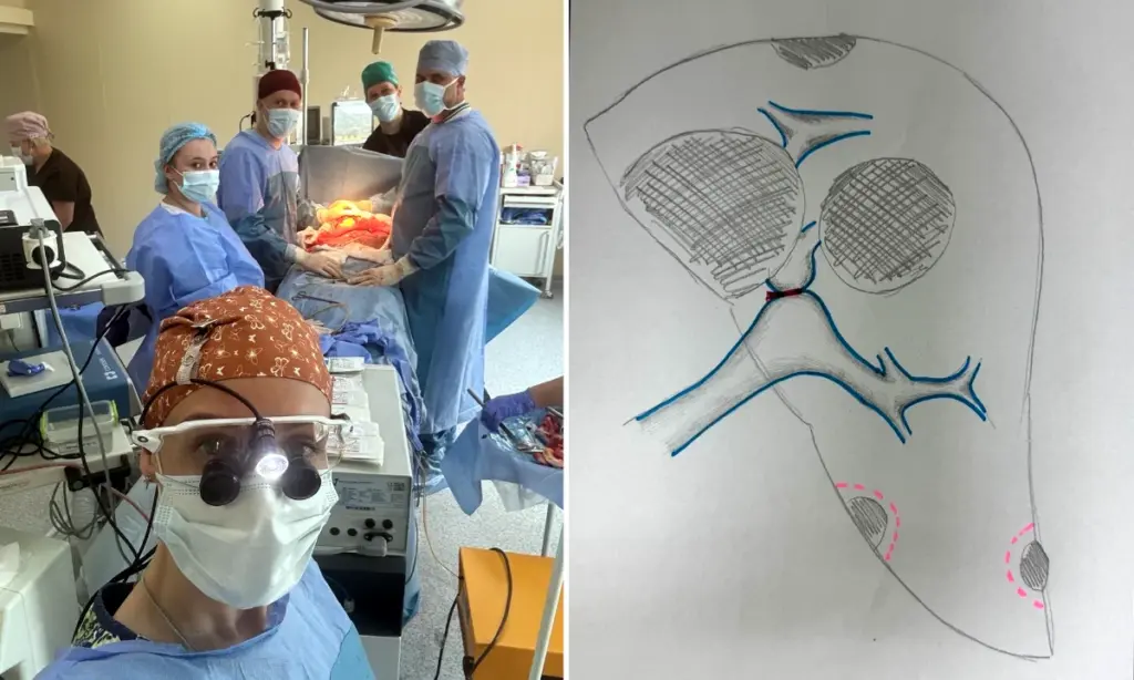 На першому етапі лікарі видалили пухлини з частини печінки, що залишиться функціональною, та перев’язали судину, яка живить іншу частину. Це стимулює гіпертрофію (збільшення) перспективного залишку органа.