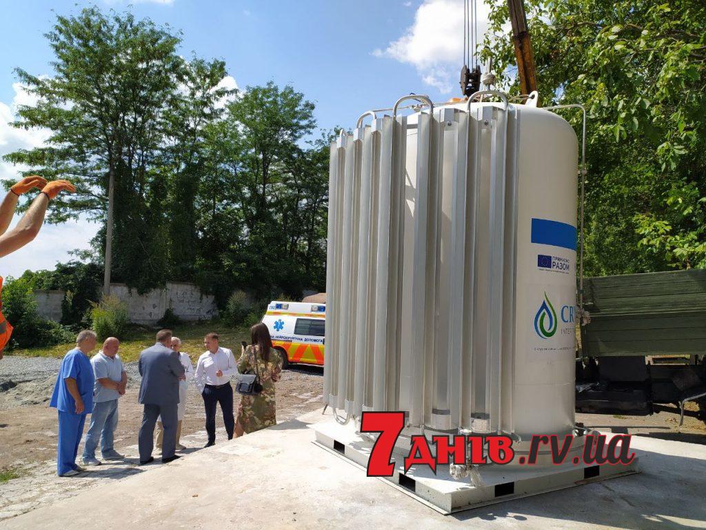 Поблизу інфекційного відділення Рівненської центральної міської лікарні у вівторок встановили кисневий резервуар. Це вже третя ємність, що функціонуватиме у базовому медзакладі по боротьбі з СОVID-19, а відтак дозволяє навіть за умови розвитку найгіршого сценарію забезпечити всіх важкохворих пацієнтів киснем.