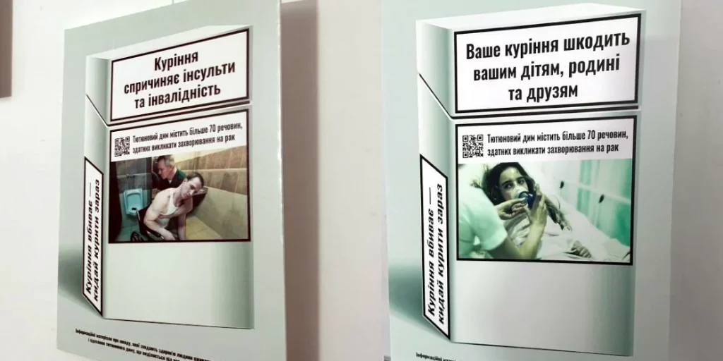 З 11 січня 2024 року медичні попередження про шкоду куріння займатимуть 65% площі пачки. Також виробники відтепер зобов’язані розміщувати на упаковках із сигаретами QR-код, який веде на сервіс Центру громадського здоров’я МОЗ України щодо надання допомоги з відмови від куріння «Я кидаю курити».